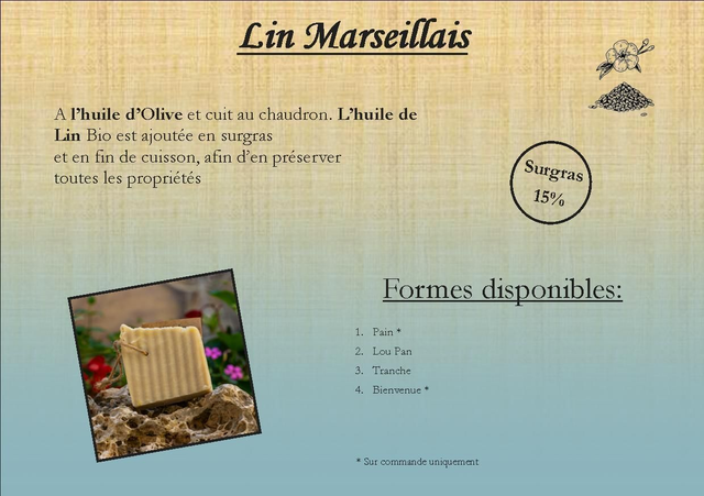 Huile dâolive€, eau€, hydroxyde de sodium, huile de lin*.